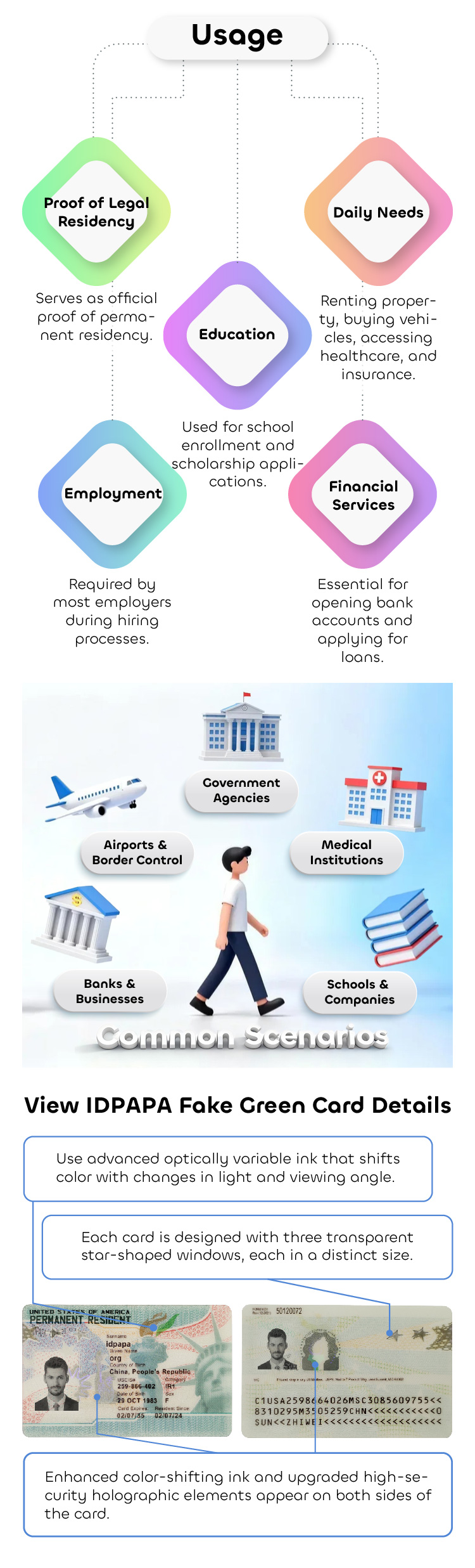 You can undoubtedly choose IDpapa to purchase your fake Green Card online. Our team of professionals is available to assist you at any time and meet your needs and requirements.