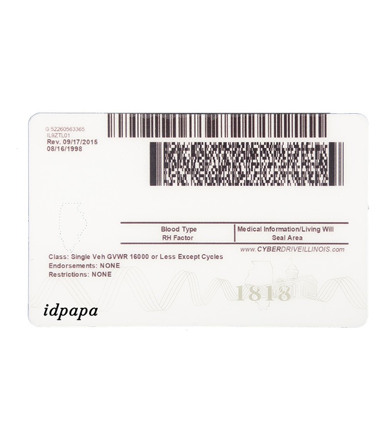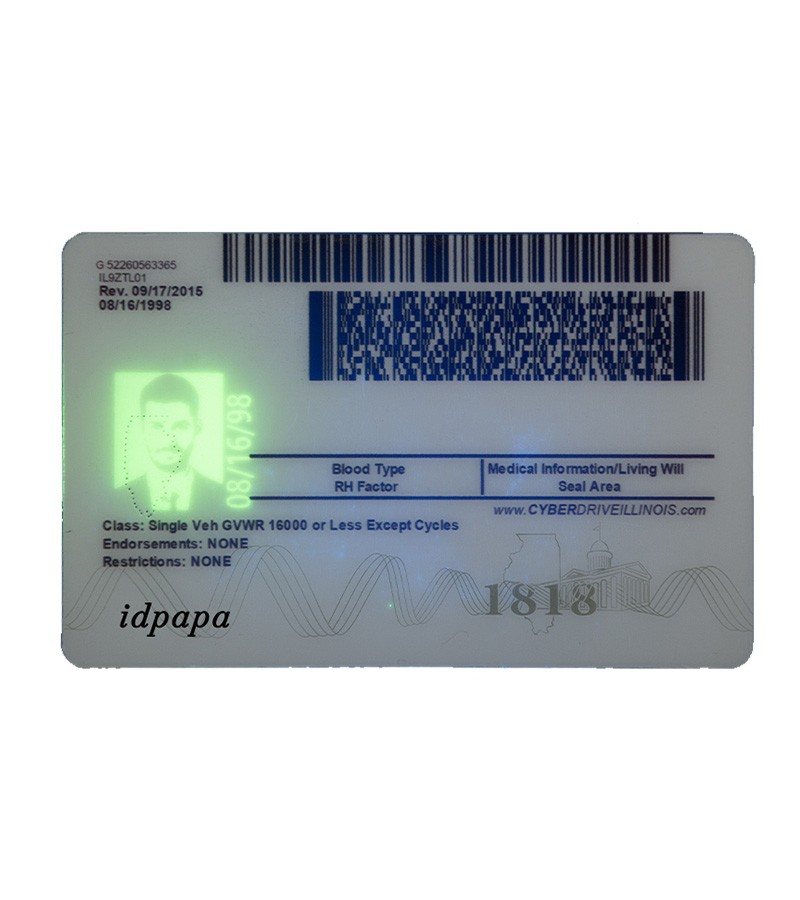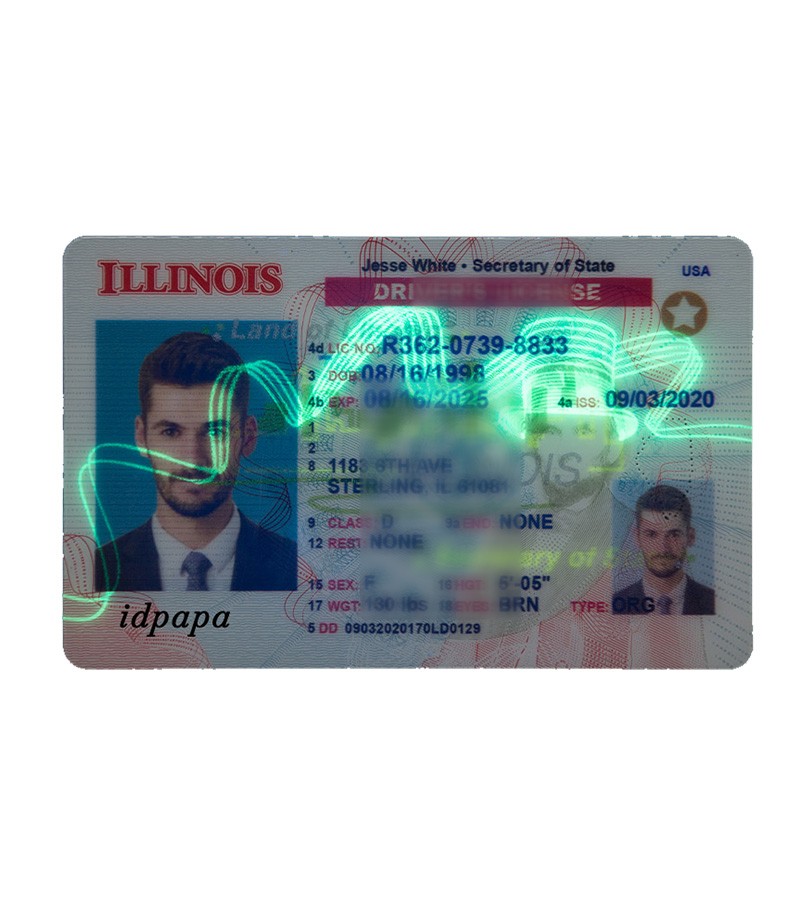 Illinois IDs are commonly printed on durable PVC or polycarbonate using high-resolution printing technology.